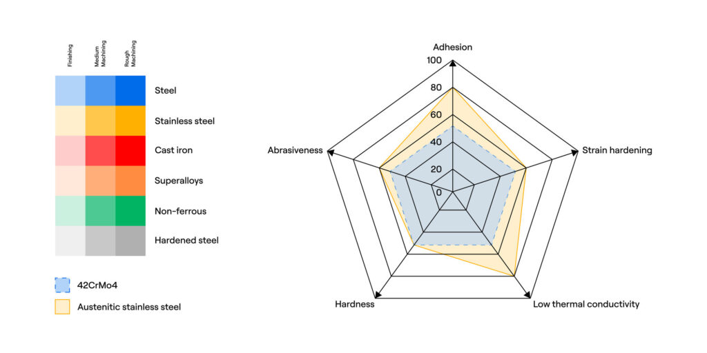 Osnovne smjernice za obradu ISO M materijala, npr. mašinska obrada nehrđajućeg čelika :